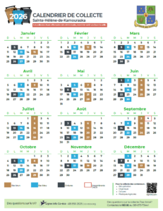 Calendrier 2025 et 2026 de la collecte des matières résiduelles